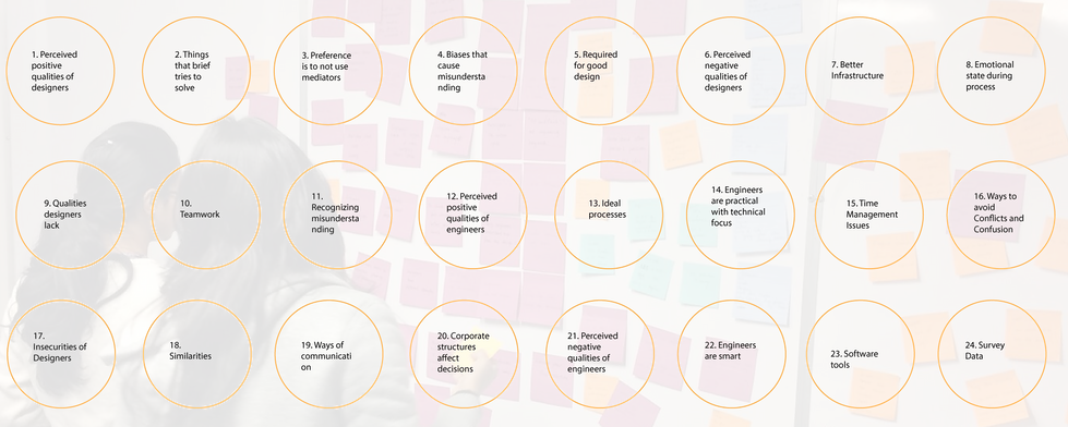 We used flow diagram as a tool to brainstorm the three core factors affecting the relationship between the designers and engineers according to our research and the categories. Through our flow diagram we came up with three core factors finding relations in the categories and highlighted the opportunity areas.
